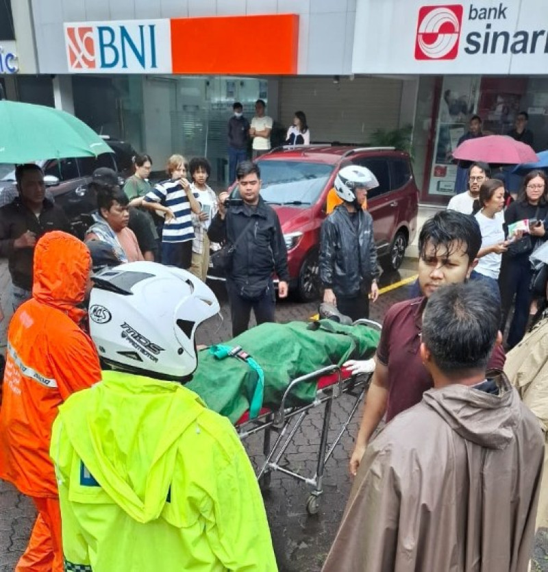 Aktvitas evakuasi jnazah Harry Nugroho Prasetyo (60) pengemudi mobi Lexus hitam, B 1732 SJV yang tewas akibat tertimpa pohon palem saat anging beliung dan hujan deras dalam cuaca buruk Jakarta., Jalan Metro Pondok Indah, di sekitar Plaza II Pondok Indah, Kelurahan Pondok Pinang, Kecamatan Kebayoran Lama, Jakarta Selatan, Minggu siang (26/10/2025). [WAHANANEWS.CO / Iwe Kushar]